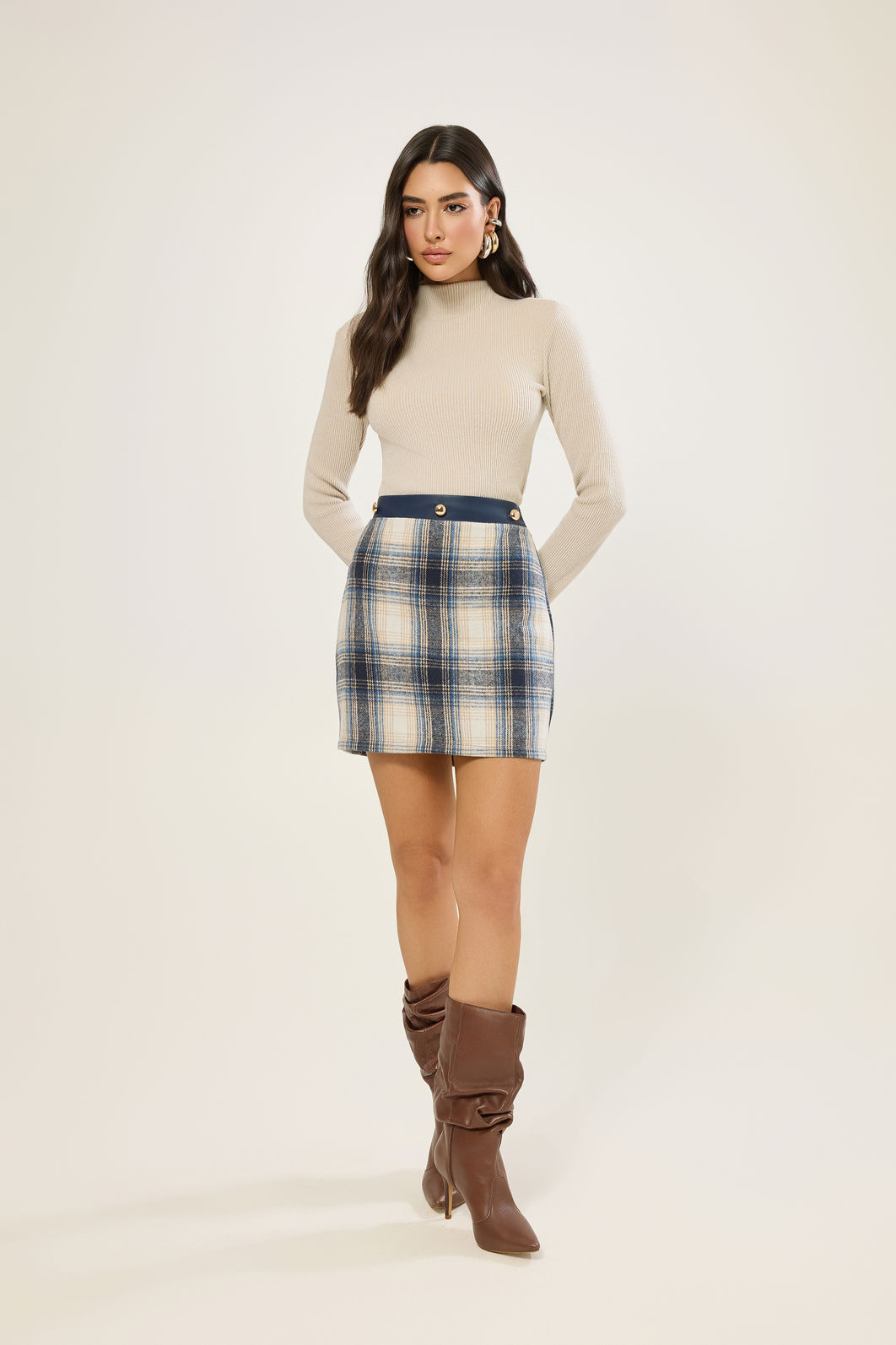 AdicionarBlusa manga longa gola alta em malha canelada tricot. A peça veste mais ajustada ao corpo. Composição: 82% Poliéster, 13% Viscose, 05% Elastano. MEDIDAS DA MODELO: *MODELO VESTINDO TAMANHO P/36 NA FOTO*.